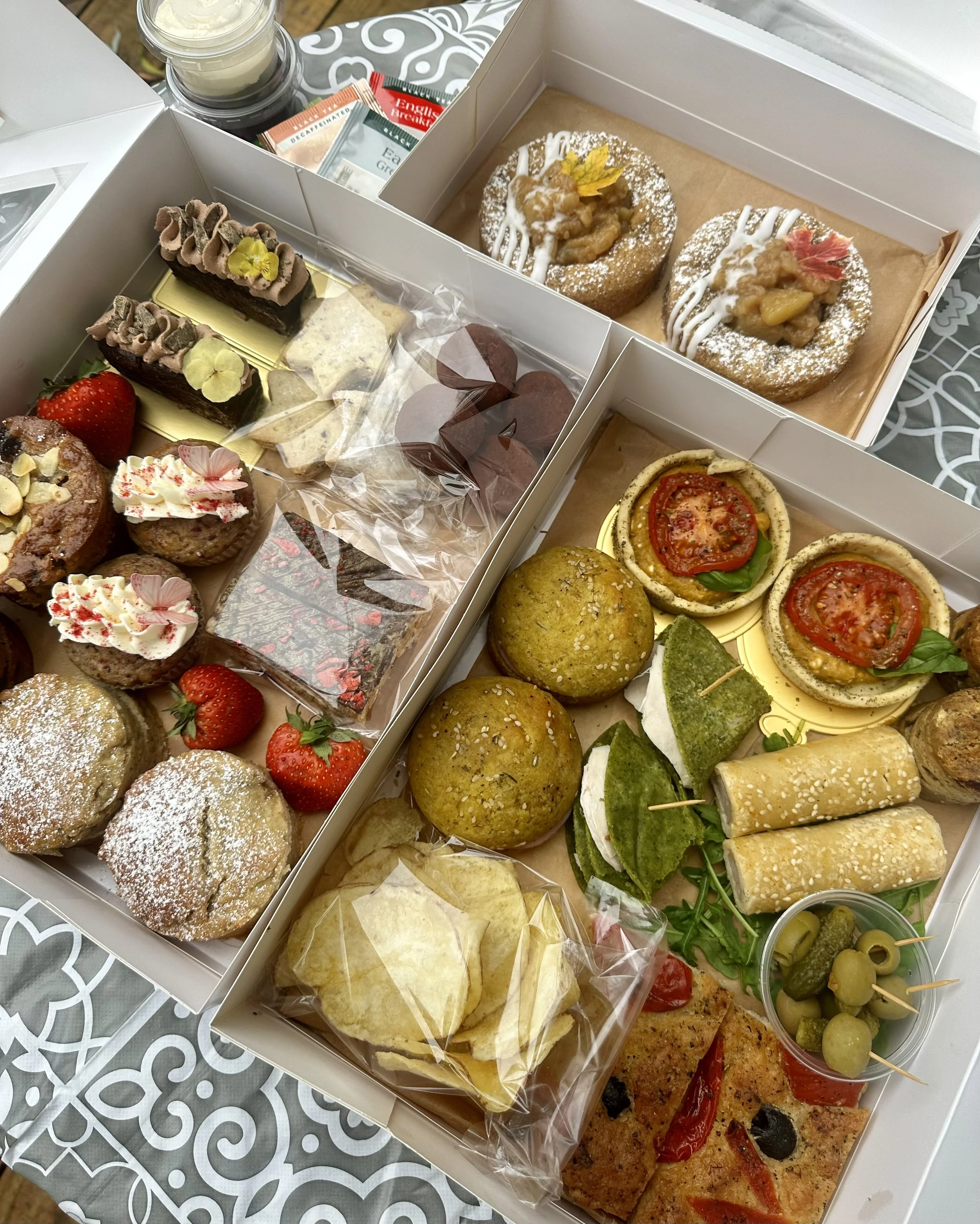 *meat fillings for sandwiches & sausage rolls are available on request otherwise everything will be made with vegan & gluten free ingredients as standard.